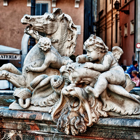Um pouco sobre a Piazza Navona, a praça que reune as famosas fontes "Quattro Fiumi”, “di Nettuno” e “del Moro” e diversos cafés e restaurantes, sendo há séculos ponto de encontro dos turistas e dos romanos.